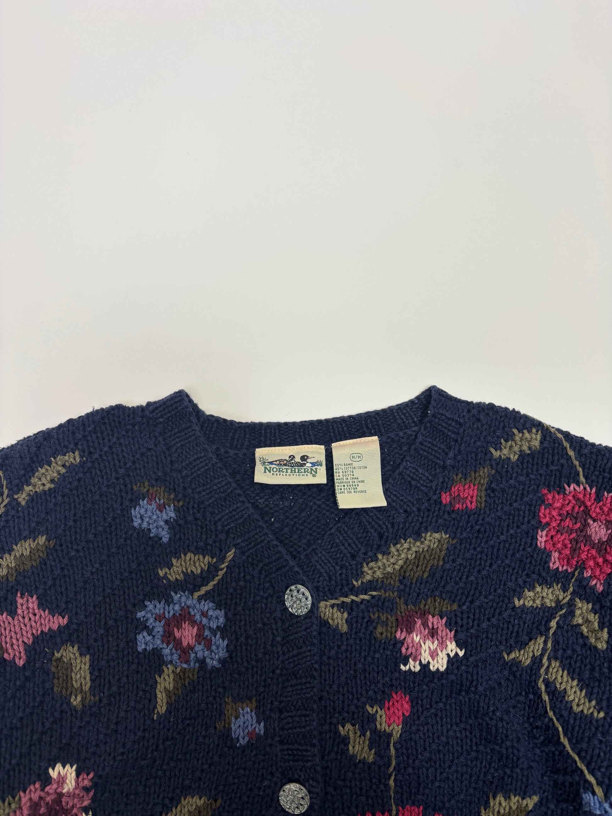 The Blue Flower Northern Reflections Knit Cardigan is a vintage knit sweater hand‑selected for the Knit Sweater Drop. Available now at CleanKIX Lab.