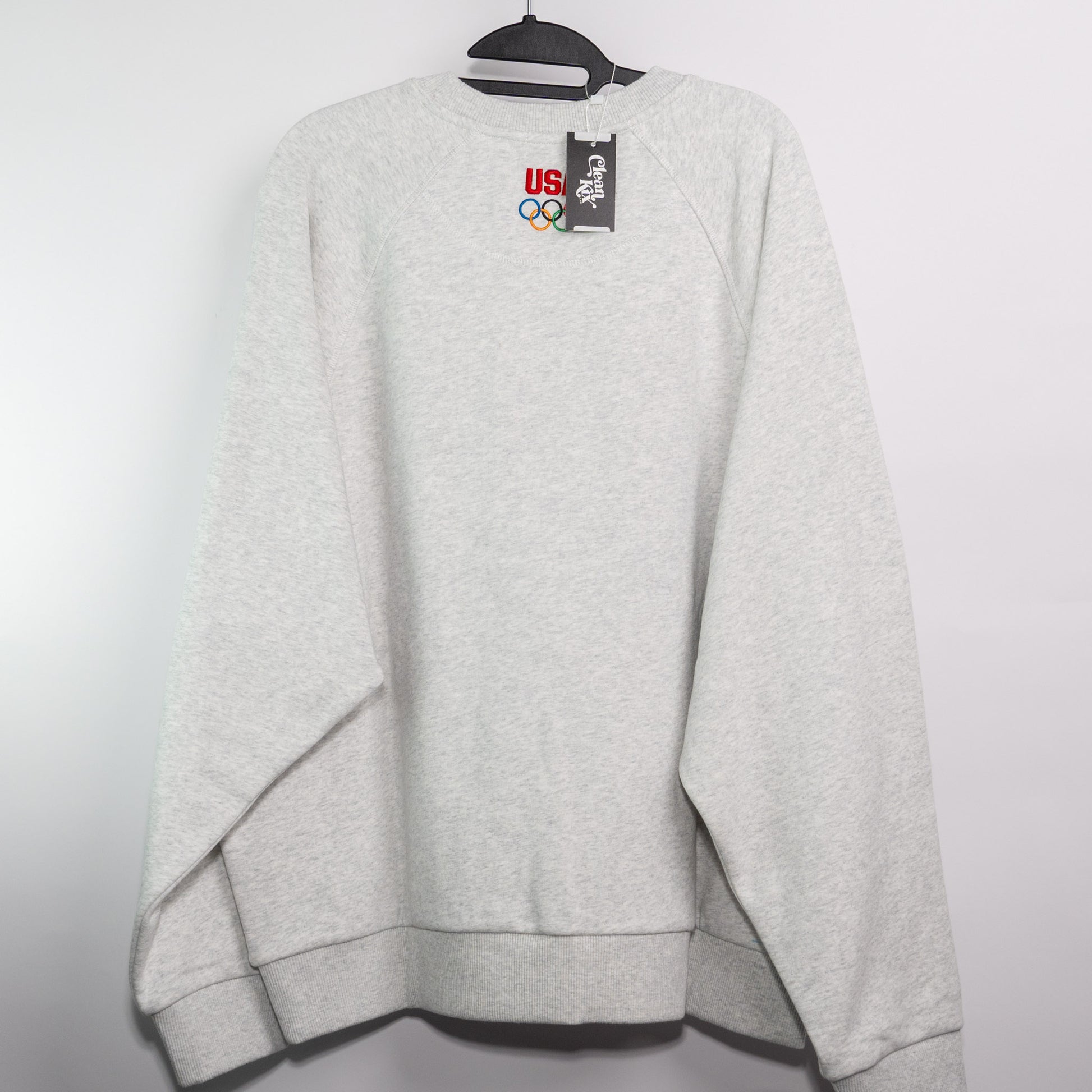 Authentic Kith Olympic / Team USA collaboration piece featuring premium construction and heritage sports styling. Color: Light Heather Grey. Size: L. Available now at CleanKIX Lab.
